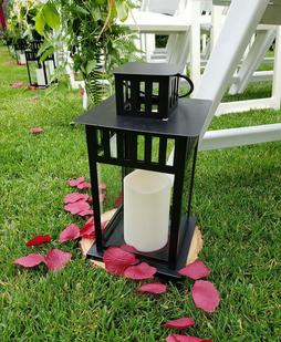 | Size | Large black distressed lantern with one 4" flameless pillar candle included – 6" w x 11" tall |