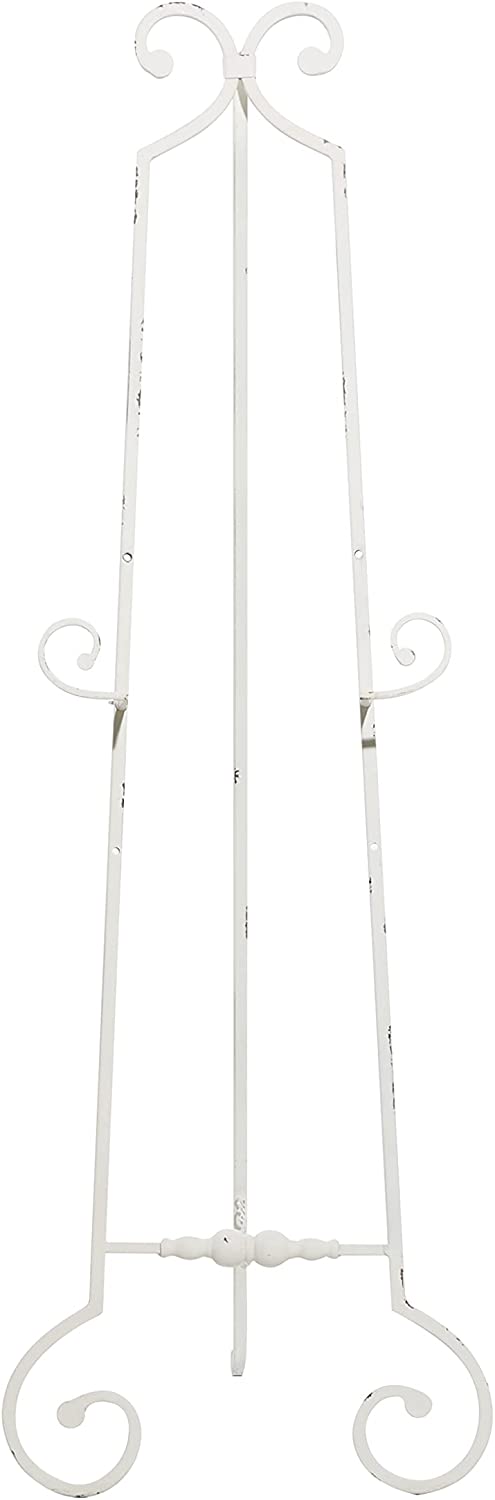 Tall metal floor easel Antique White – ​4.25 ft tall -17″L x 22″W x 52″H – scrolled holders – Adjustable